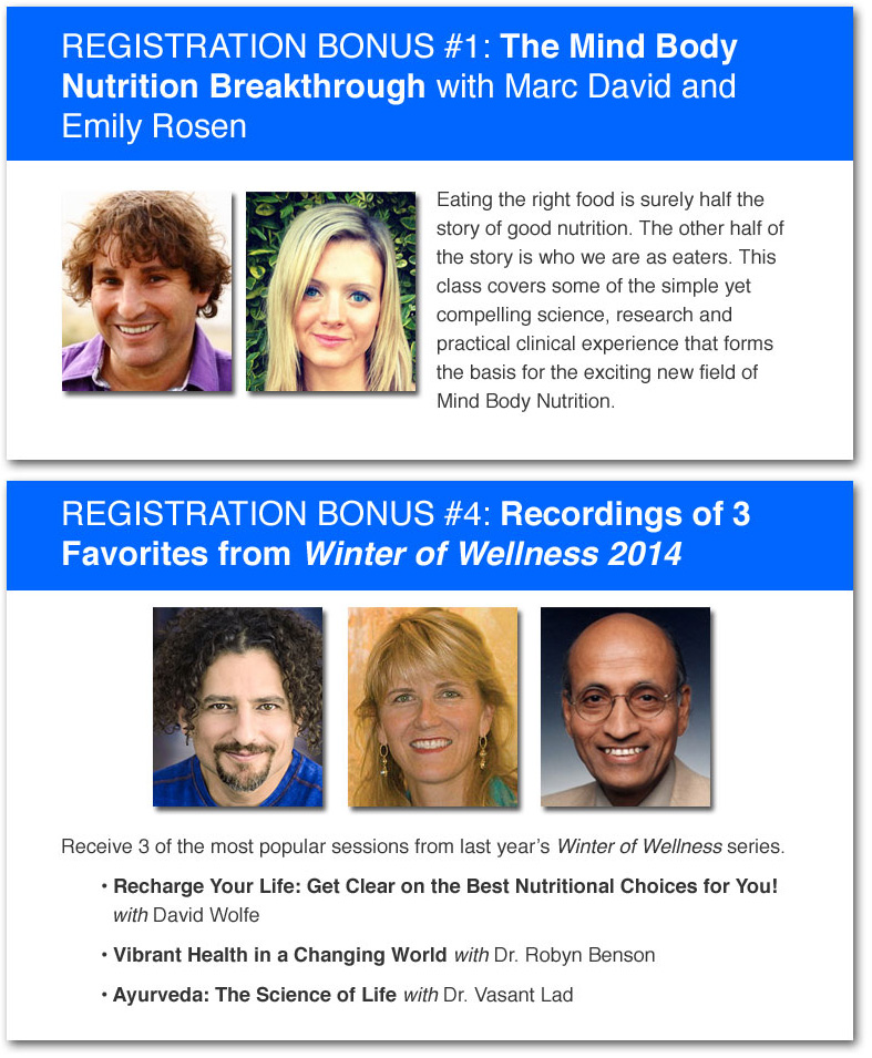 Register now for FREE to be notified about our next Winter of Wellness Summit, and receive a free bonus package, including these recordings: